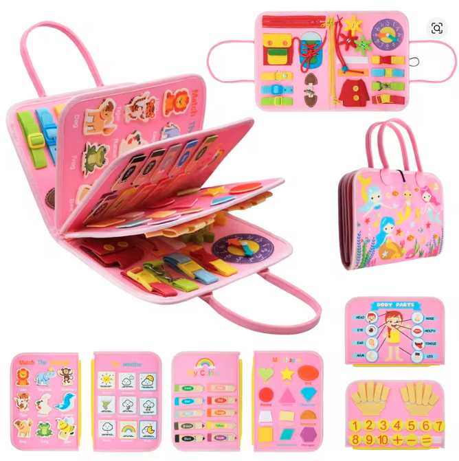 امنح طفلك تجربة تعليمية ممتعة تجمع بين اللعب والتعلّم مع لوح الأنشطة مونتيسوري الجديد لعام 2025 — أداة مثالية لتطوير المهارات الحركية الدقيقة، التركيز، والاستقلالية لدى الأطفال.